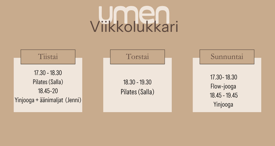 Varaa paikkasi viikkotunneille ja aloita polkusi kohti kestävää hyvinvointia.